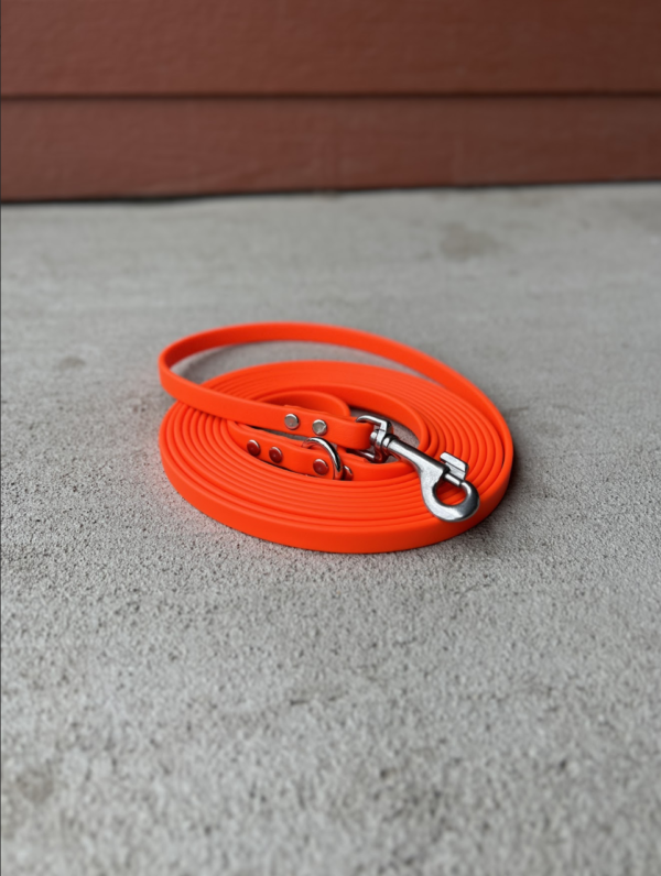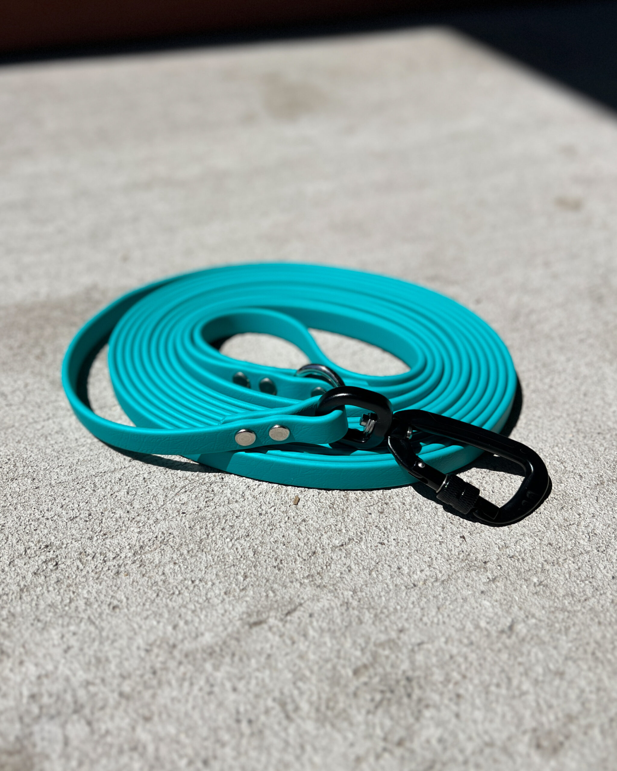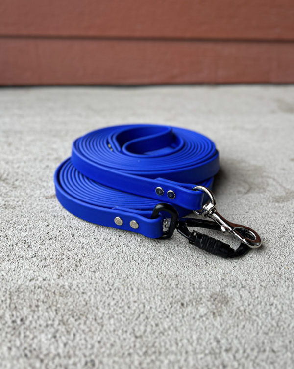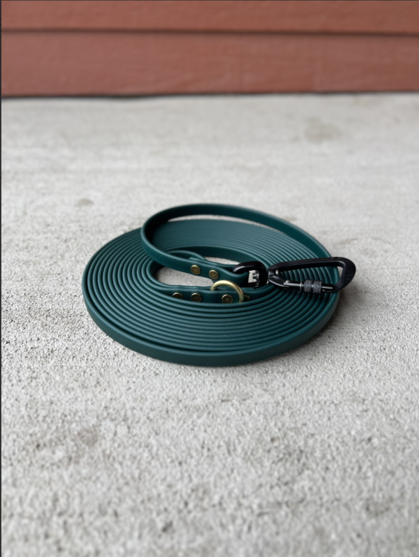 BioThane is a waterproof and durable material, excellent for all sorts of outdoor adventures. The 15’ length is an efficient length that isn’t too much slack to keep track of, yet provides your dog with more freedom to express their normal dog behaviors while out and about. Crafted using “super heavy” BioThane. Options include some of the following: 1/2” or 3/4” width, standard bolt snap or locking carabiner, nickel plated or brass hardware, and choice of BioThane color. Learn more about Collie & Corso by visiting https://www.collieandcorso.com