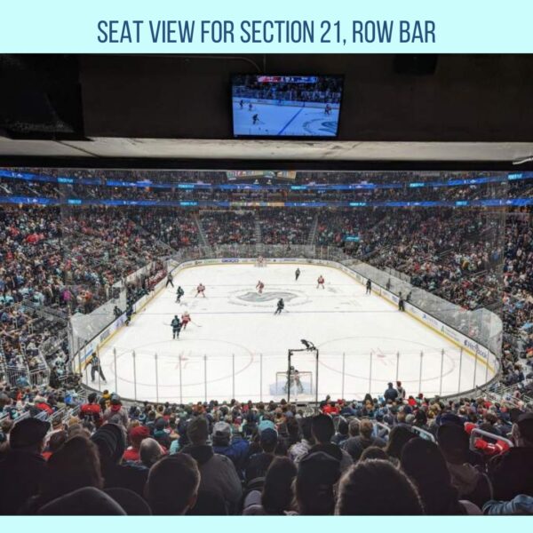 Tickets are in section 21, bar seats 14 & 15. Barstool seats with bar top to set things on. Easy to get in and out of, even when puck is in play. Great view of play on the ice.